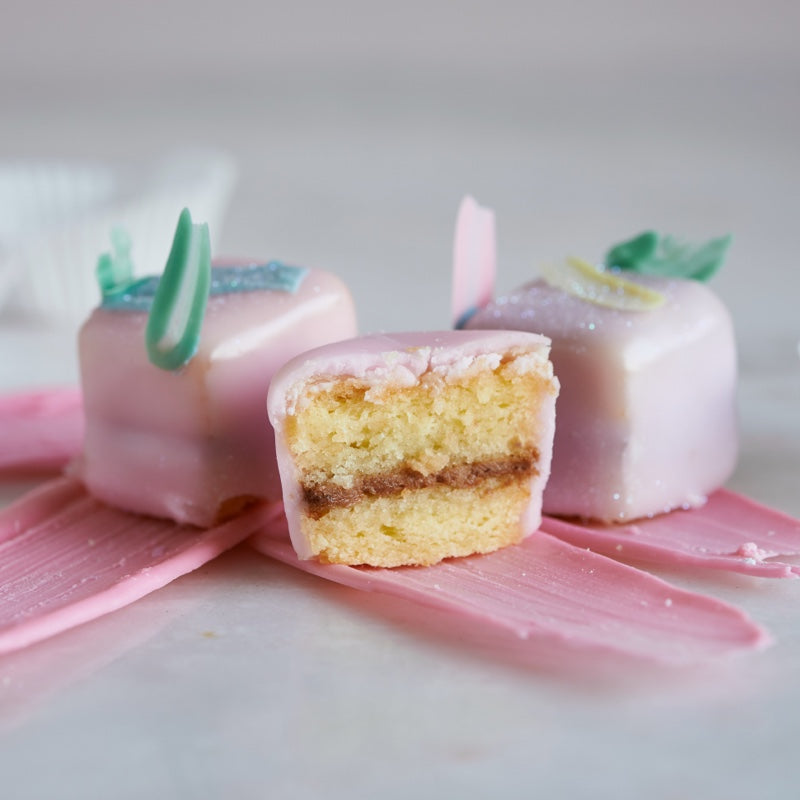 Delicate, hand-decorated petit fours made with layers of sponge, buttercream, and glaze. Each one is crafted to look as beautiful as it tastes — ideal for entertaining, gifting, or elevating your weekend tea table.